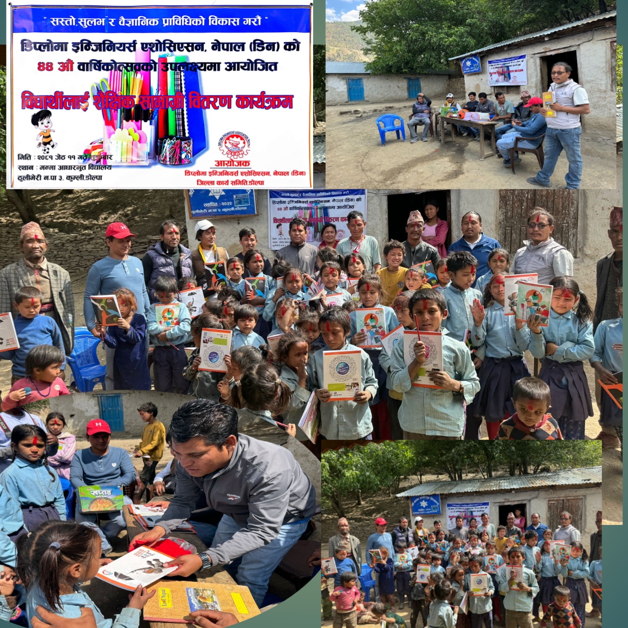 डिन को ४४ औं बार्षिक उत्सवकाे अवसरमा बिधालयमा शैक्षिक सामाग्री वितरण