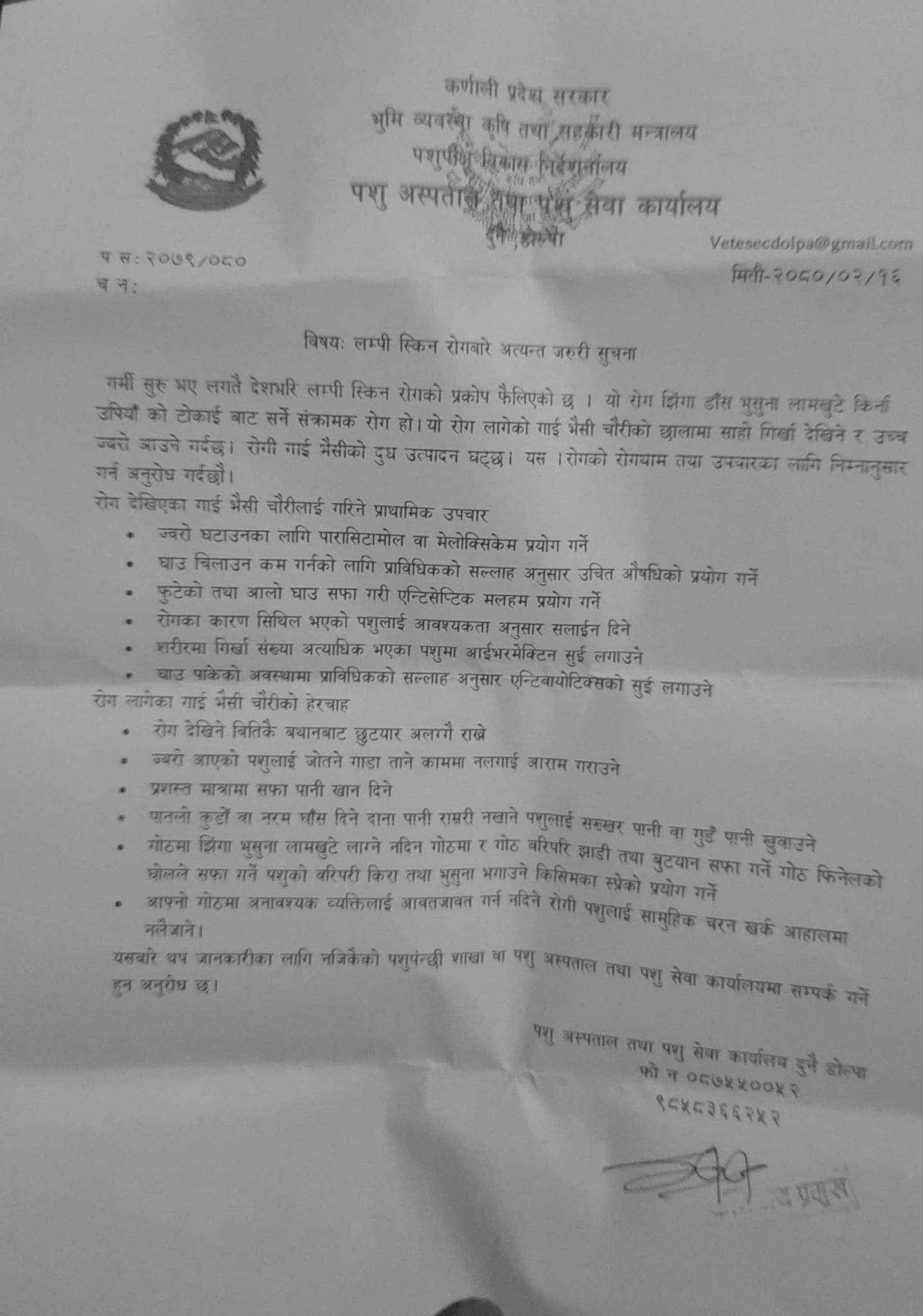कृषि बिकास कार्यलय दुनै डोल्पाको कृषकहरुका लागि जन हितमा जारी सन्देश
